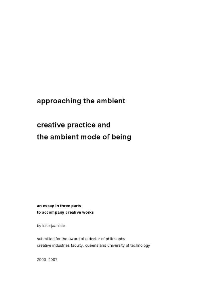 Jaaniste L Approaching The Ambient Creative Practice And The Ambient Mode Of Being Pdf Phenomenology Philosophy Martin Heidegger